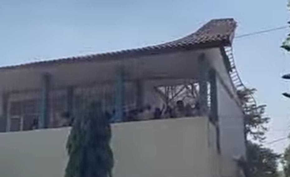 Berdasarkan video yang beredar, sekolah tersebut ambruk pada bagian atap lantai dua dan menimpa objek yang ada di bawahnya.
