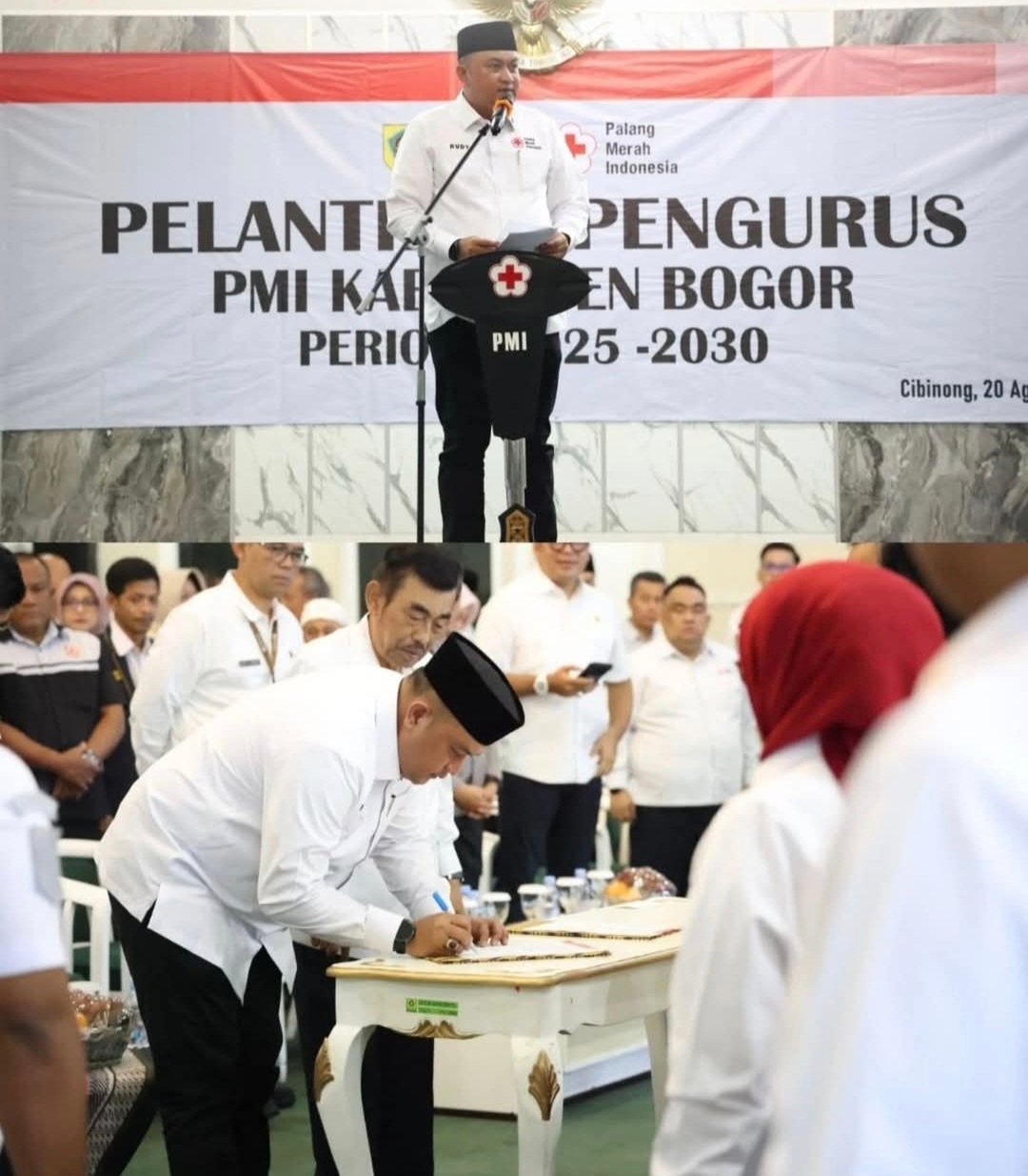 Demikian ditegaskan Bupati Rudy Susmanto pada acara pelantikan Dewan Kehormatan PMI dan pengurus PMI Kabupaten Bogor periode tahun 2025-2030, di Ruang Serbaguna I, Sekretariat Daerah, Cibinong, Rabu (20/8/25). Pelantikan Dewan Kehormatan PMI dan Palang Merah Indonesia Kabupaten Bogor dilakukan secara langsung oleh Ketua PMI Jawa Barat.