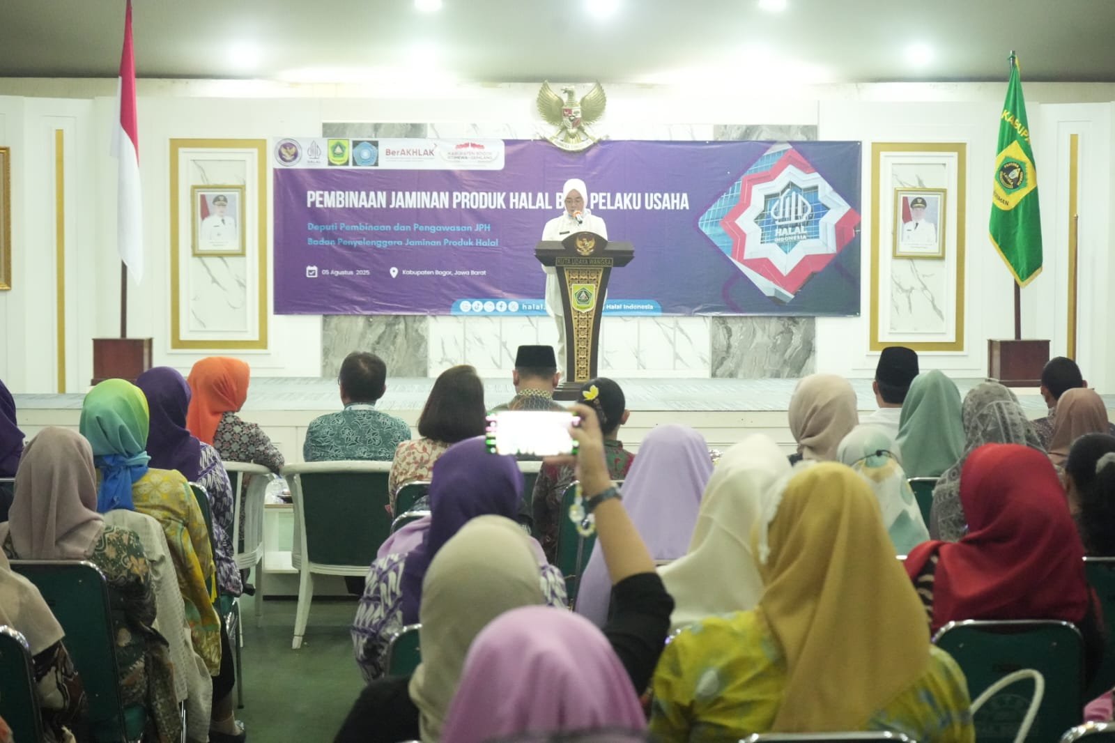 Diantaranya melalui pembinaan bagi pelaku usaha mikro dan kecil, penyelenggara jaminan produk halal yang digelar di Gedung Serbaguna I, Sekretariat Daerah, Cibinong, Selasa (5/8).