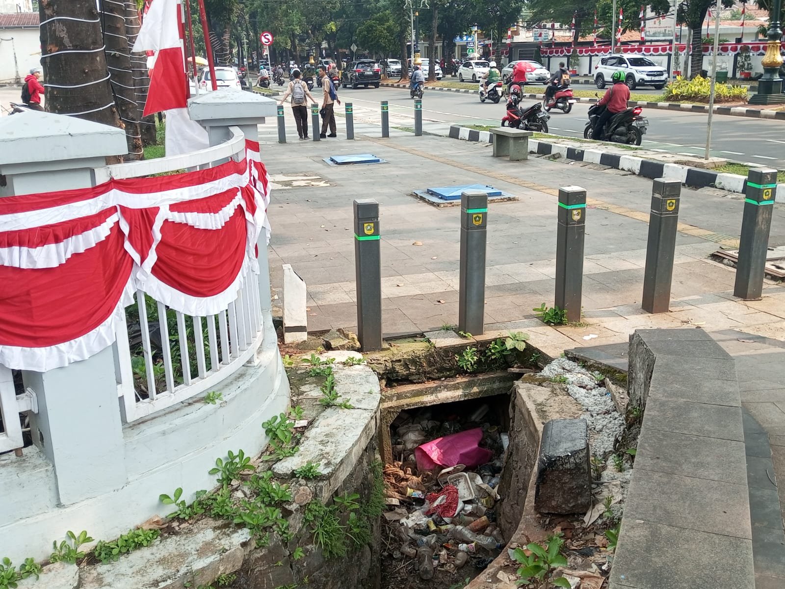 Akibatnya, banjir meluap karena saluran drainase tersebut tersumbat serta mengeluarkan bau tak sedap saat hujan deras.