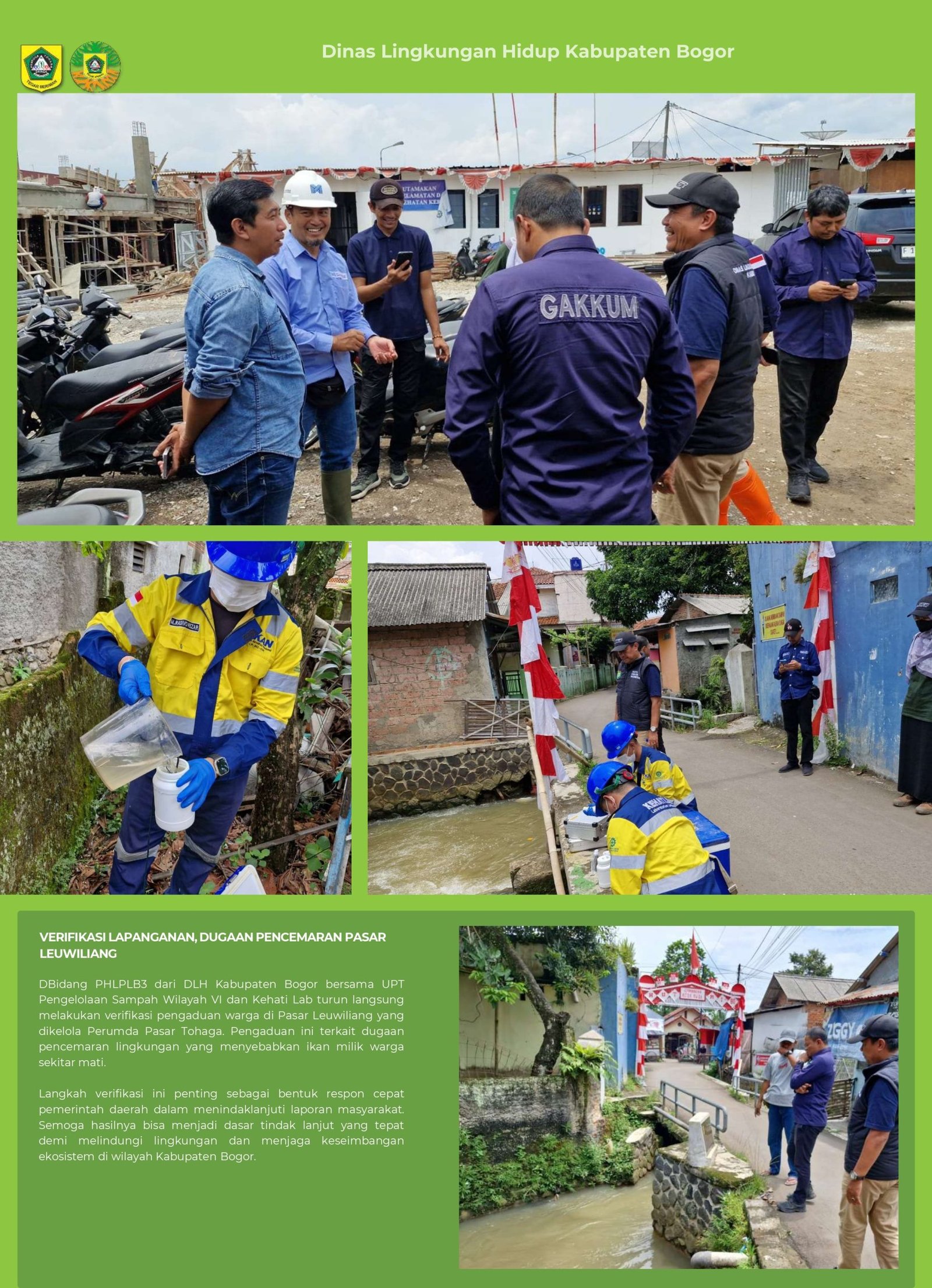 Tim verifikasi lapangan DLH Kabupaten Bogor menindaklanjuti pengaduan warga terkait dugaan pencemaran lingkungan di Pasar Leuwiliang.