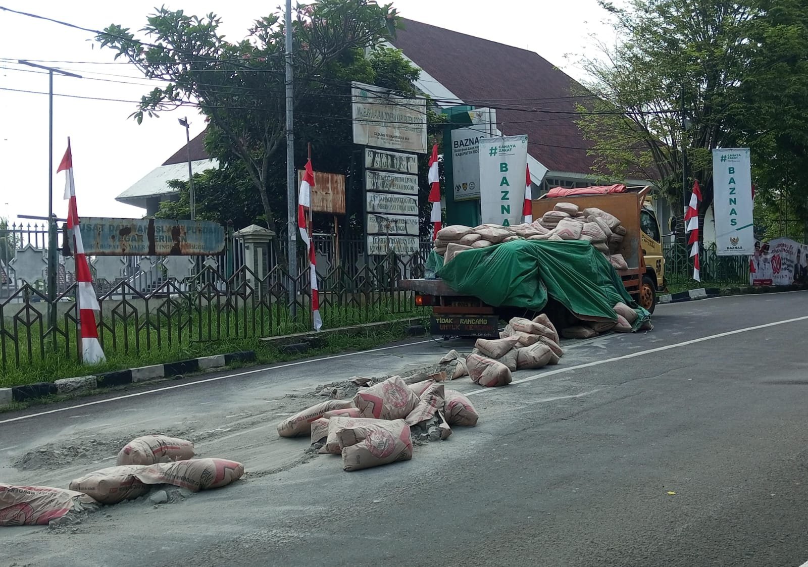 Bahkan, kardus-kardus dari semen itu mengalami kerusakan yang membuat semen mengotori jalan dan berdampak pada akses lalu lintas yang tersendat.