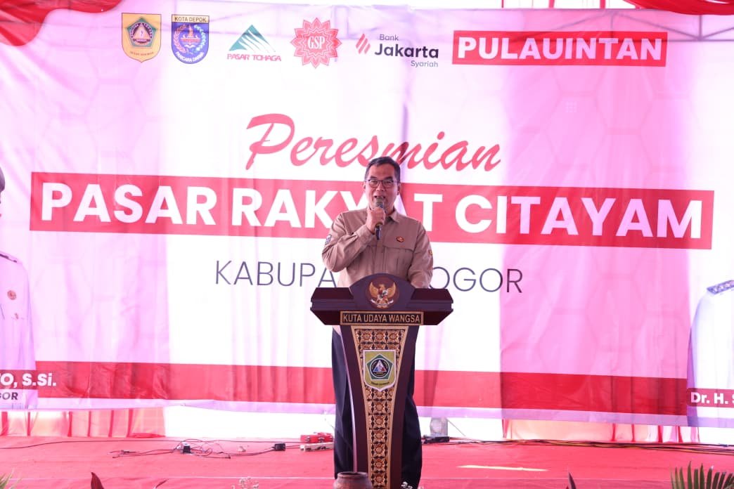 Sekda Kabupaten Bogor Ajat Rochmat Jatnika meresmikan Pasar Citayem. (Ist)